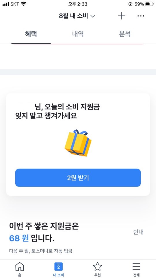 지원금으로 작게는 몇 십원부터 몇백 원까지 토스 머니를 받지.
