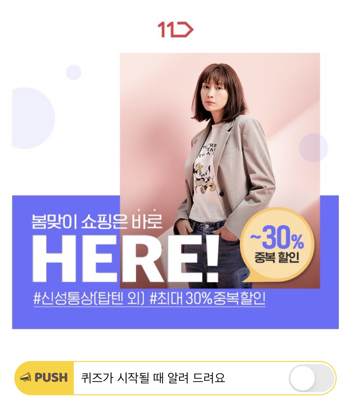 단 O일간! 최대 30%! 봄과 함께 찾아온 11번가 'FASION IS HERE'