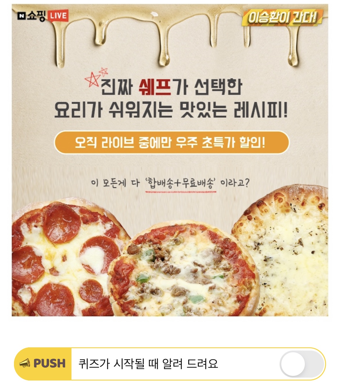 오늘 이승환이 간다 라이브 방송에서는 OOOOOOOO와 함께 착한 중소기업의 경쟁력있고 맛있는 제품들을 선보입니다.'OOOOOOOO'(8자)에 들어갈 말은 무엇일까요?