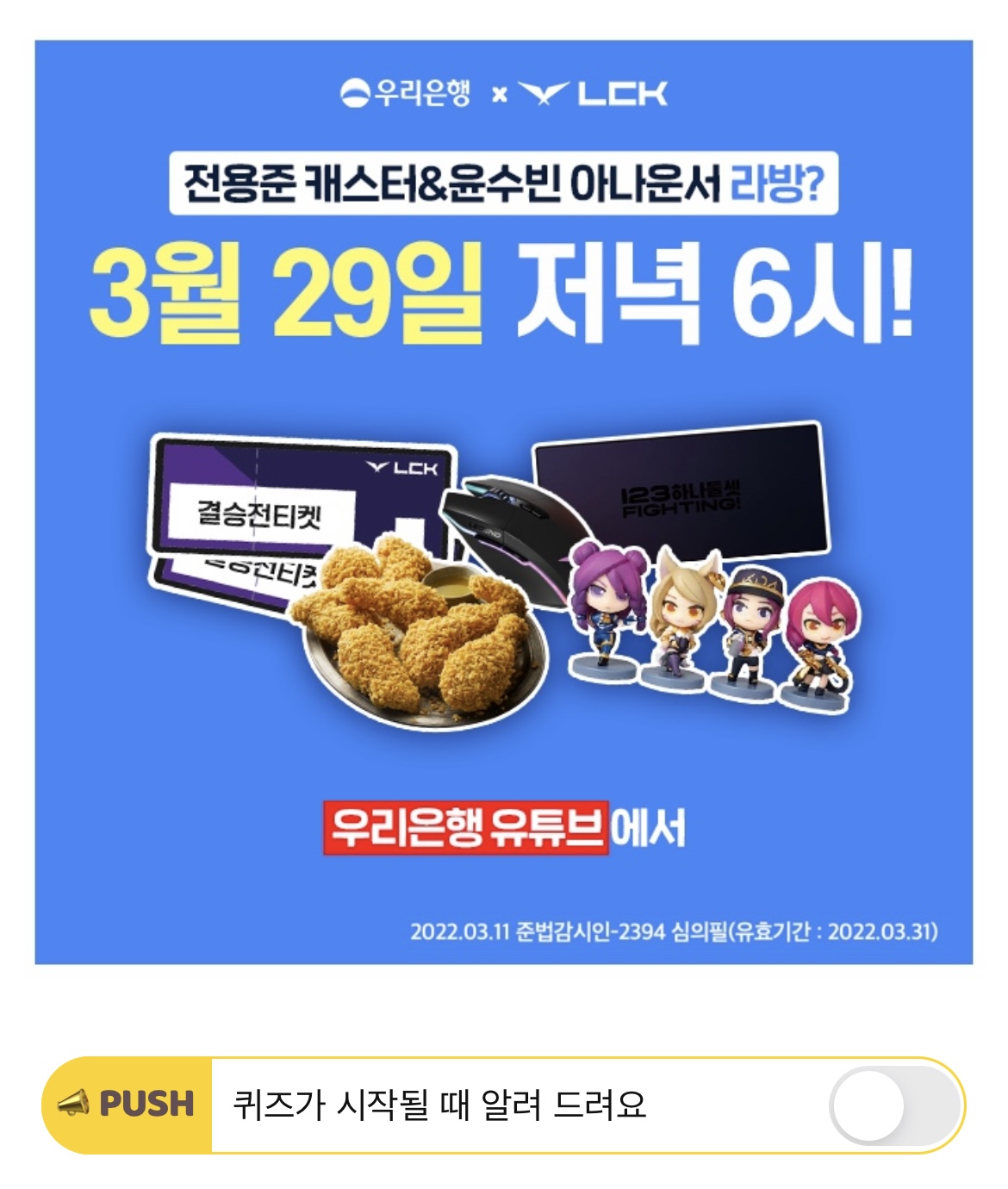 22년 LCK 스프링 결승전을 맞아, 우리은행에서 준비한 이벤트의 이름은