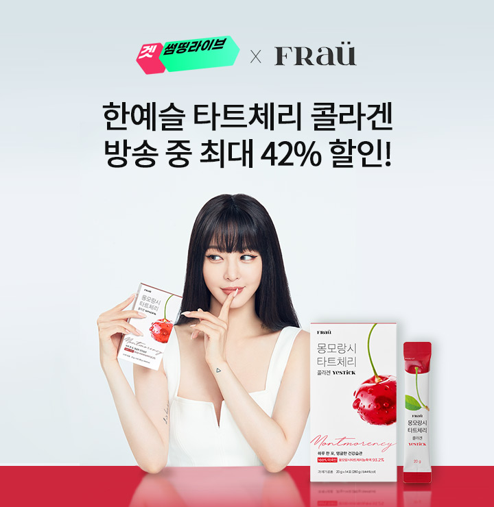 문제 : 현재 겟썸띵라이브에서 100% 미국산 몽모랑시 타트체리 원료를 사용한 화제의 프라우 타트체리 예스틱을 특별 할인가에 판매 중입니다.