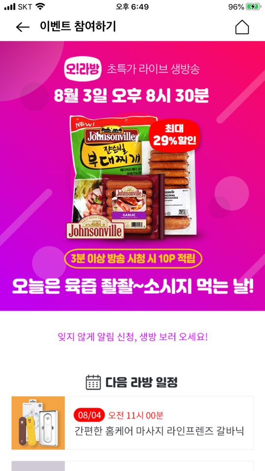 보통 잼 라이브 시작하고 대략 10분가량 상품 설명하다가,