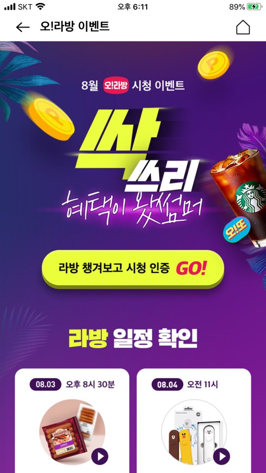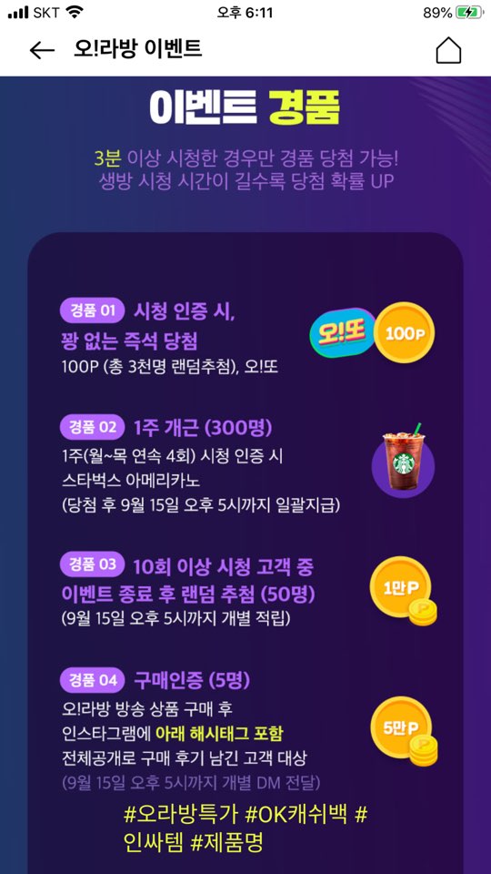 1. ok캐시백 오!라방 시청 이벤트