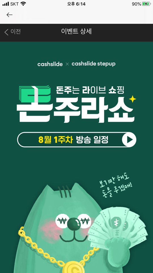 캐시 슬라이드 S 캐시 적립 이벤트를 챙기면 될 것 같다.