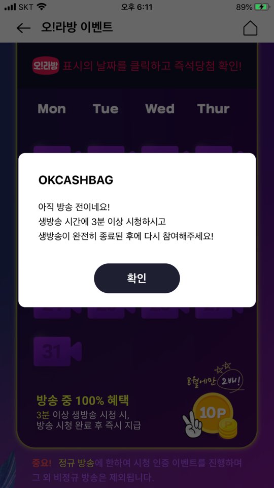이번에 ok캐시백에서 하는 오! 라방 시청 이벤트