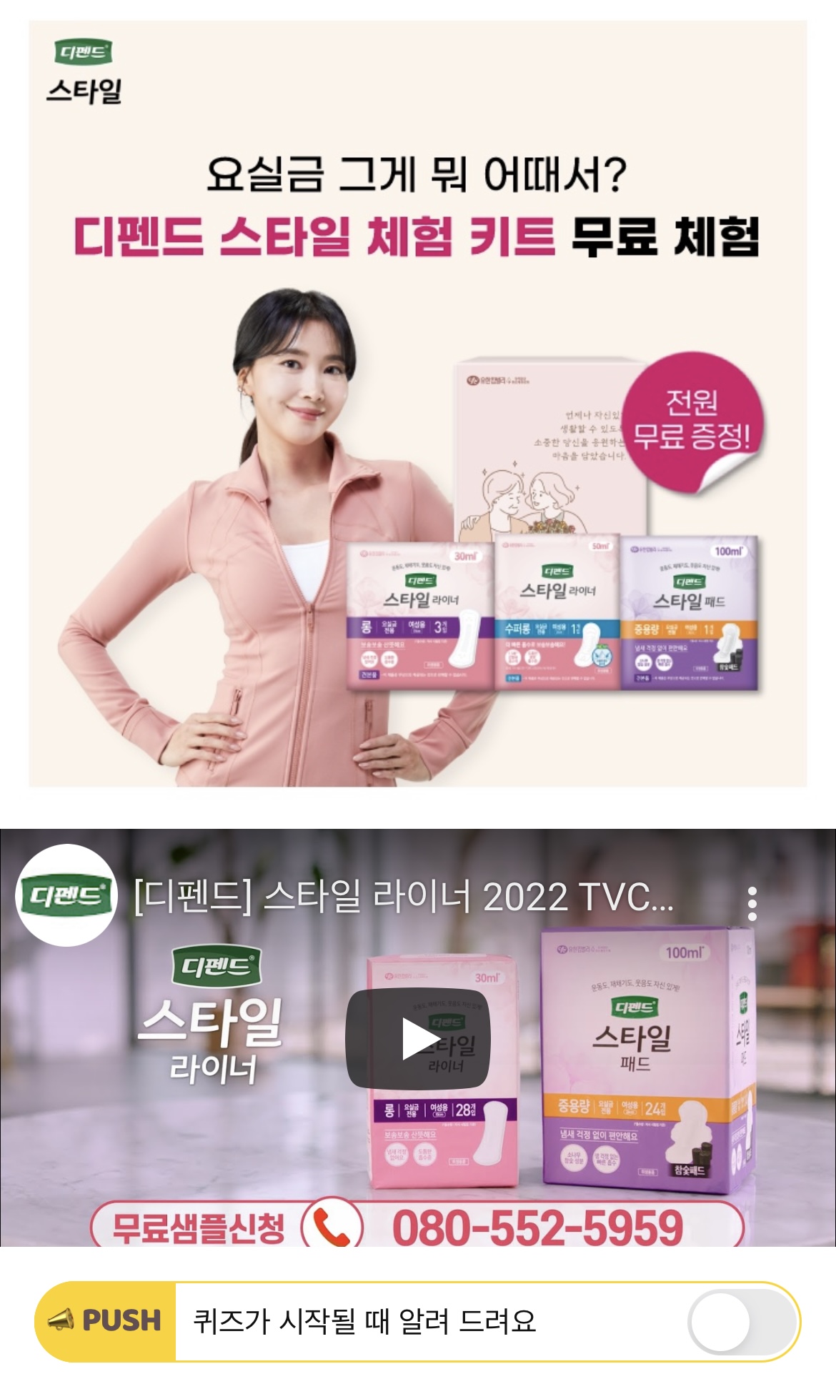 디펜드 스타일 라이너는 얇지만 요의 흡수가 빨라 보송보송해 OOO 걱정 없이 자신 있게 생활할 수 있어요. (힌트 : ㅇㅅㄱ)