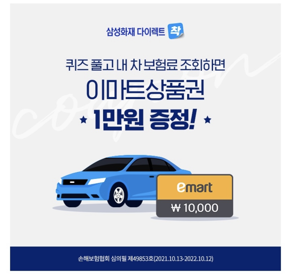 삼성화재 다이렉트 자동차보험 이벤트는 보험개발원 기준 OOO를 소유한 고객님 본인에 한하여 참여 가능합니다.