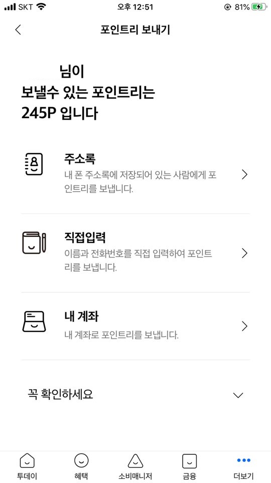 처음에도 말했지만 포인트리는 kb국민은행으로 바로 송금이 가능하다.