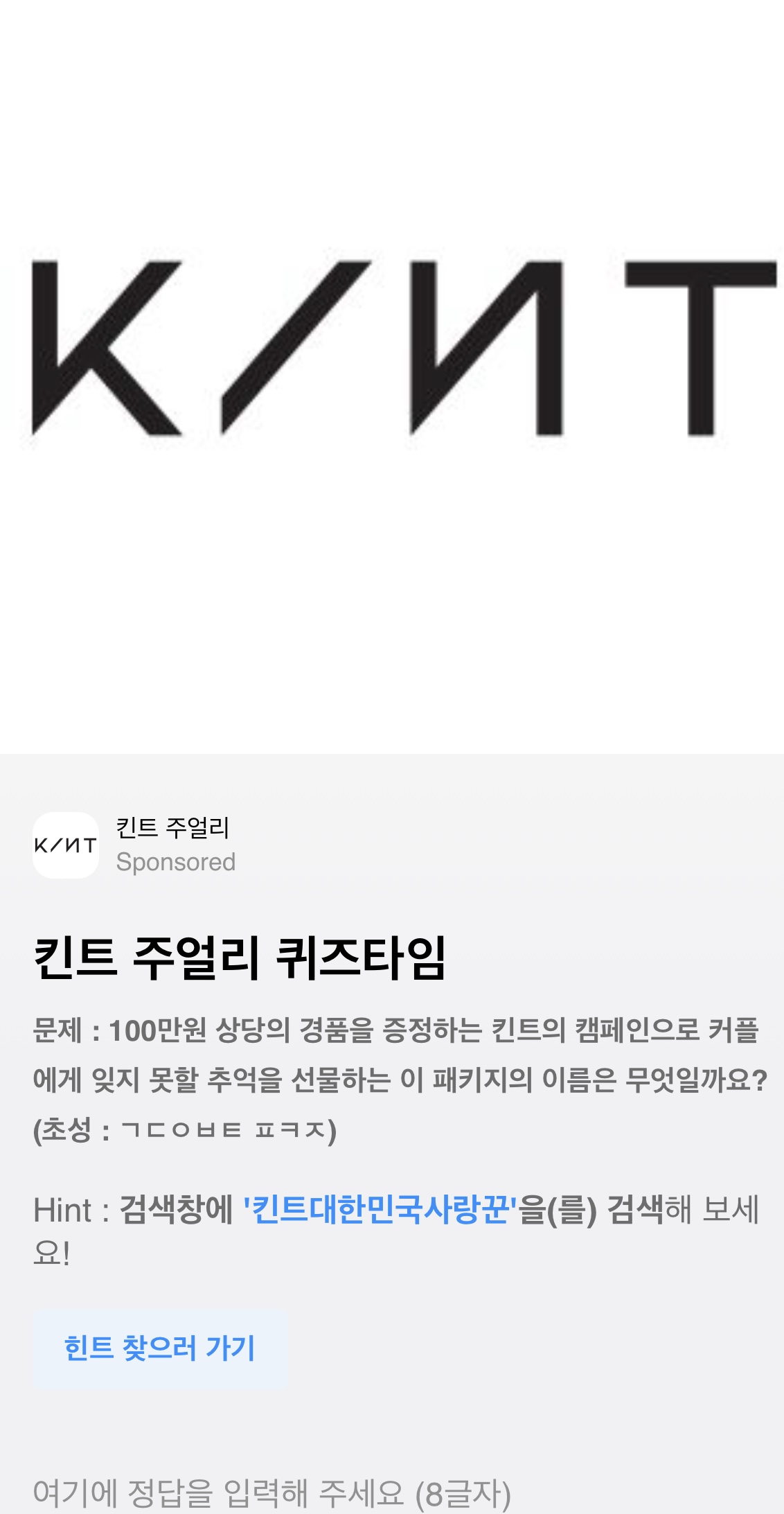 Hint : 검색창에 '킨트대한민국사랑꾼'을(를) 검색해 보세요