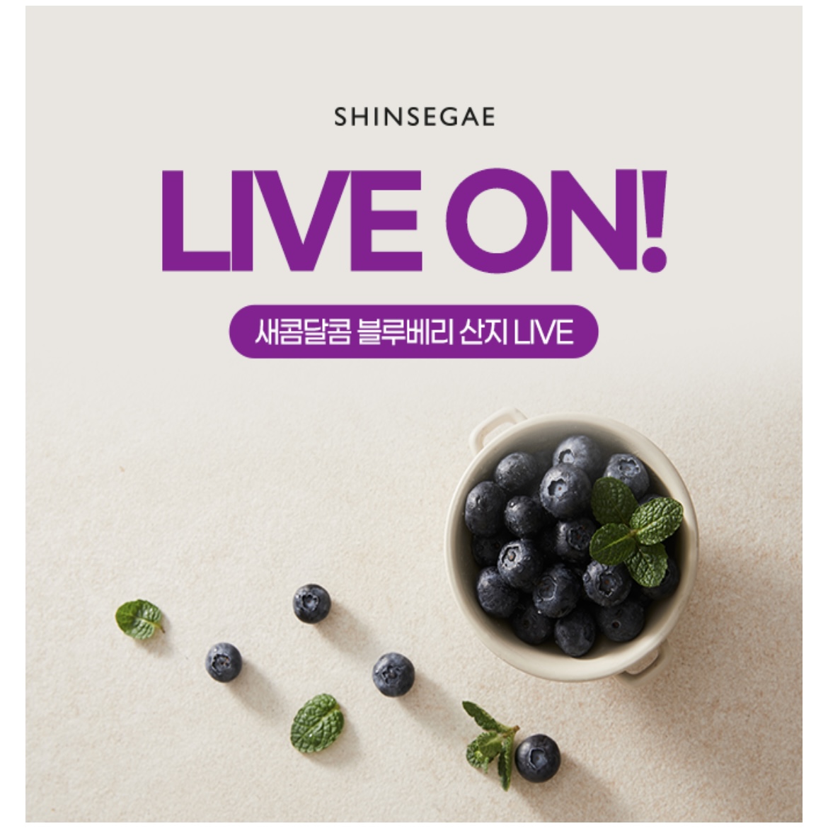 신세계백화점에서 14일 오전 11시부터 새콤달콤 OO! 블루베리 산지 LIVE를 진행한다. 빈칸에 들어갈 말은?