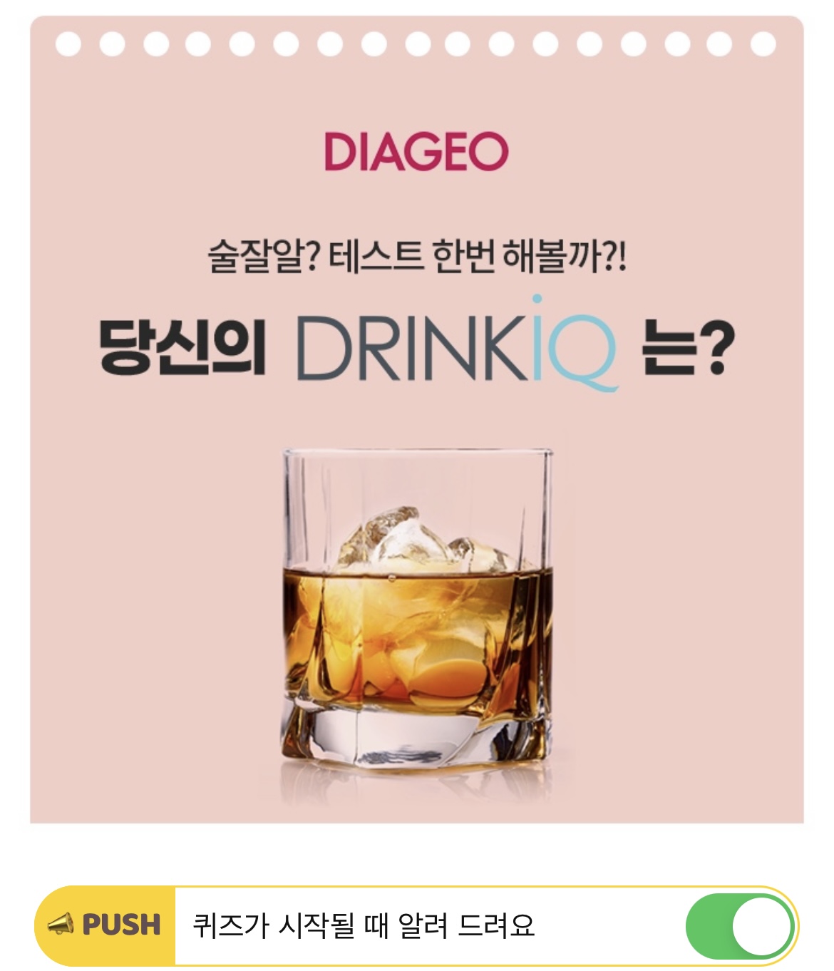 DIAGEO에서는 OOOOOO퀴즈를 진행하고 있습니다.