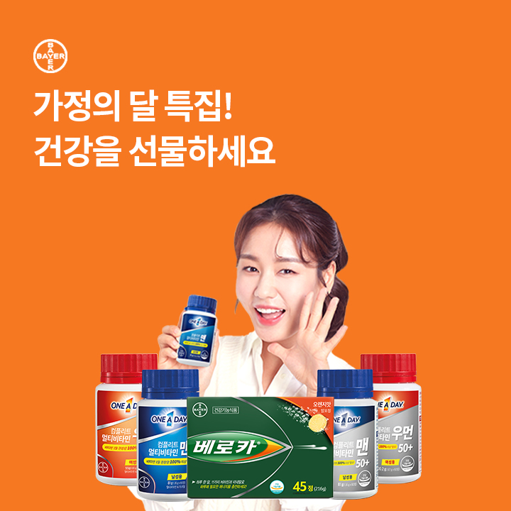 문제 : 바이엘코리아의 맛있는 오렌지맛 발포비타민 와 간편하게 하루 한알 섭취 가능한 원어데이로 사랑하는 사람에게 건강을 선물하세요!