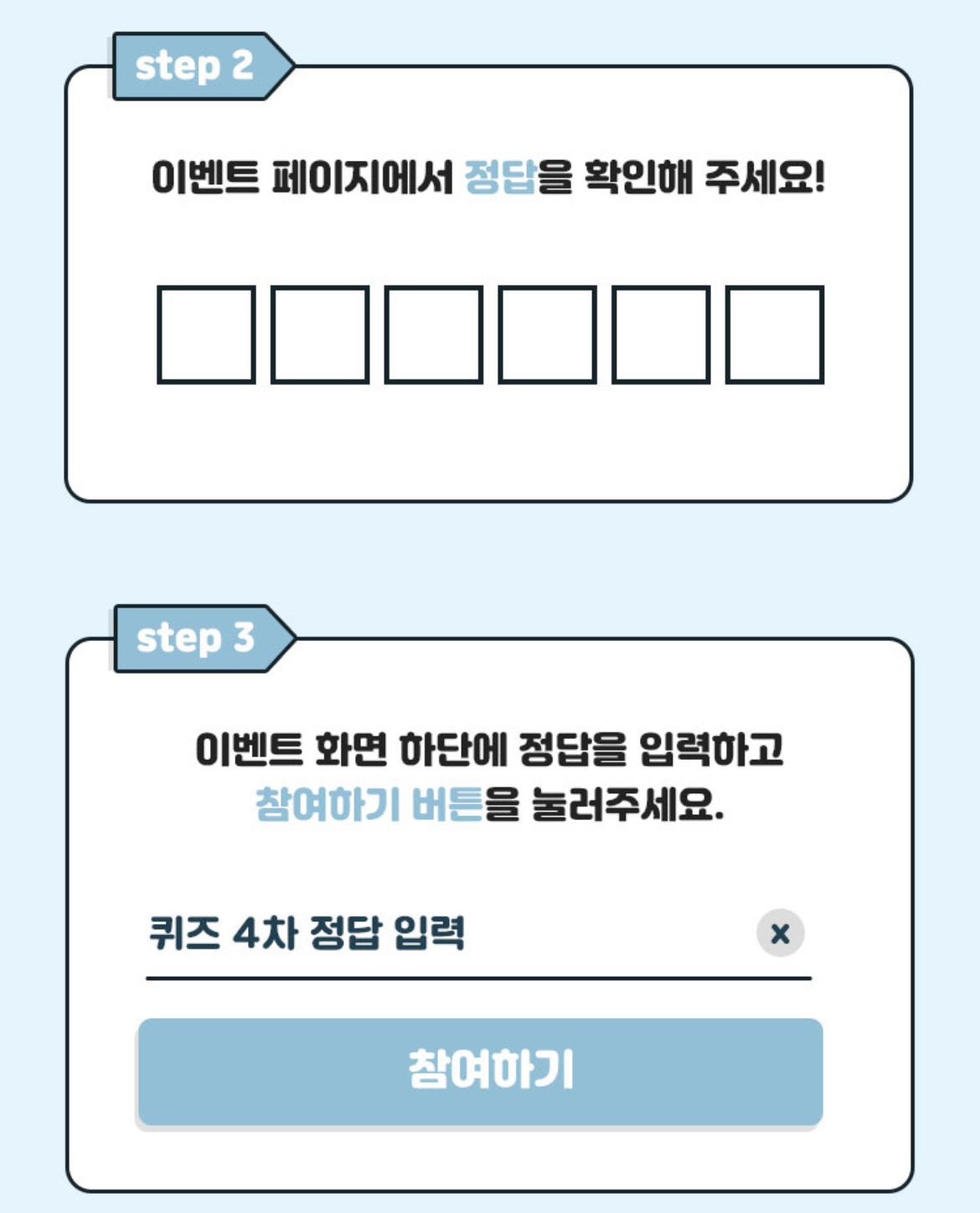 이벤트 화면 하단에 정답을 입력하고 참여하기 버튼을 눌러주세요.