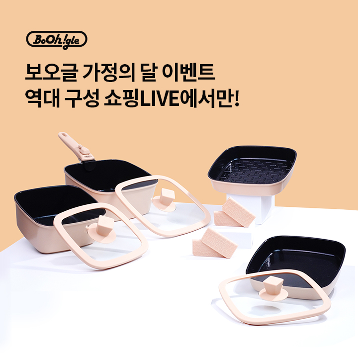 문제 : 주방용품의 선두주자 보오글은 여성 폐암의 원인인 요리매연 없는 세상을 만들기 위해 태어났습니다. 환경과 고객을 생각해 로 제작하고 평생교환 서비스인 4K 프로젝트 캠페인을 펼치는 보오글이 오후 7시 쇼핑LIVE를 진행합니다. 방송 참여만 해도 터지는 경품과 라이브 할인 혜택을 만나보세요!