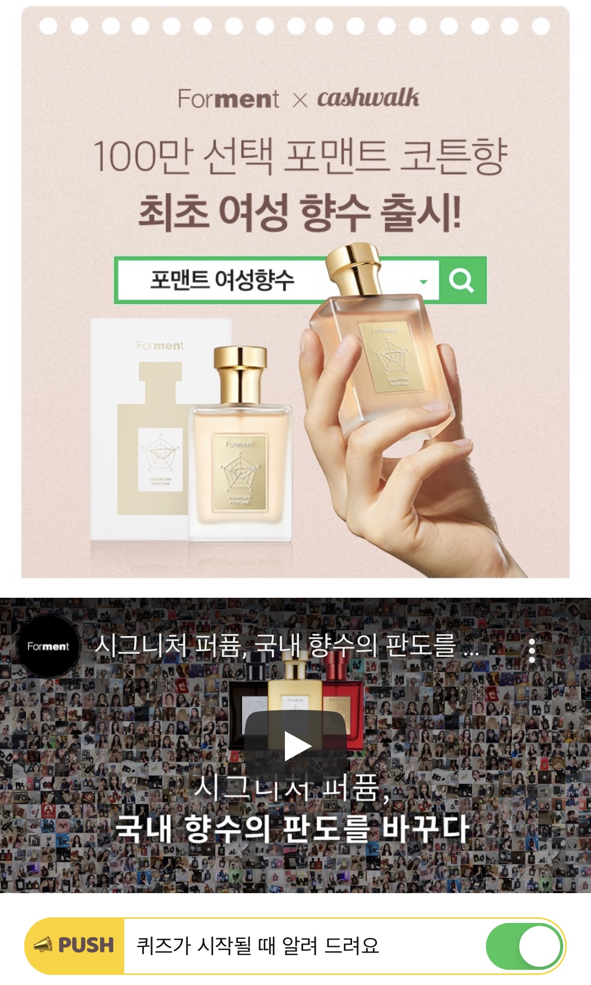 포맨트 여성향수 OOOOO이 신규 출시되었습니다. 성훈 향수, 코튼향 향수로 유명한 포맨트에서 처음으로 여성을 위한 코튼향 항수를 선보이는데요, OOOOO는 무엇일까요? (초성힌트 : ㅁㅁㄹㅍㅍ)