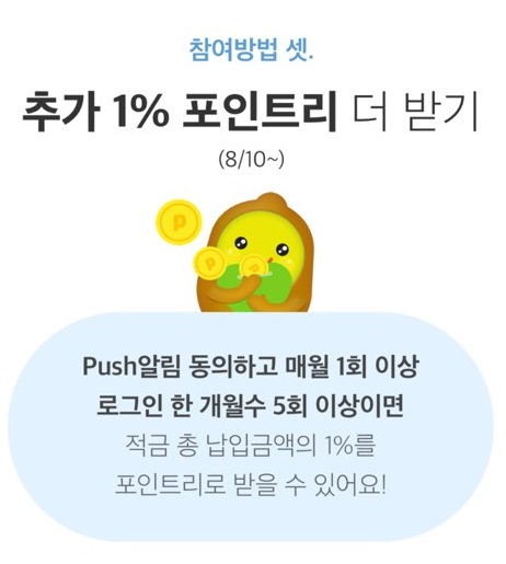 그리고 이전 내용에 추가되는 사항이 납입금액의 1%를 포인트리로 받을 수 있다고 하는데,