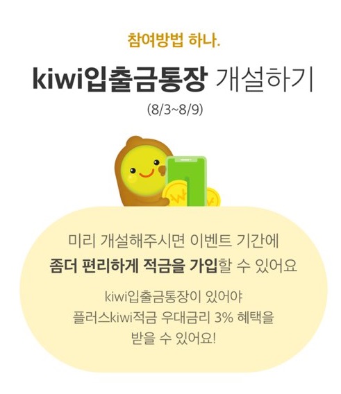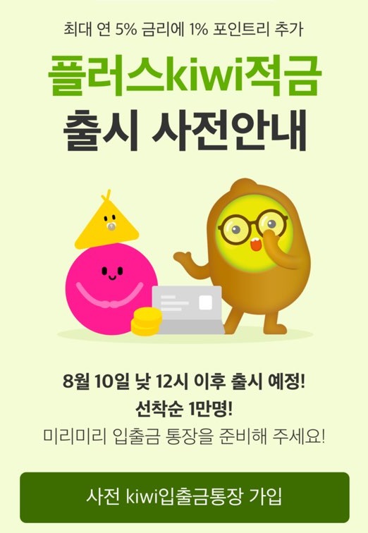 kiwi 입출금 통장이 출시되고 카드가 나온 후 적금이 나온다고 했는데