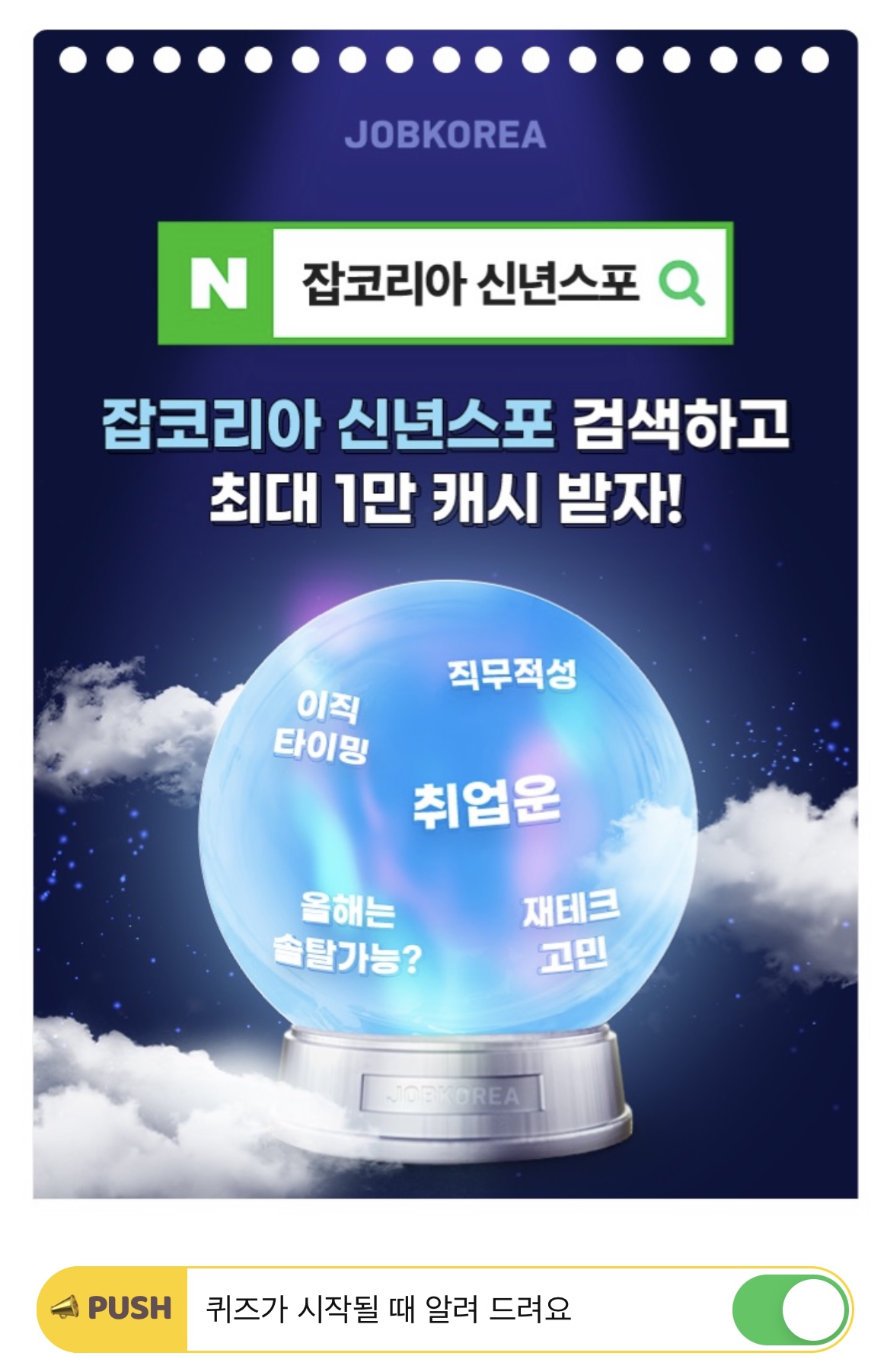 잡코리아에서 2021년 직장운, 이직운, 상반기 운세를 볼 수 있는 OOOO OOOO이벤트를 진행합니다. 신년운세 보고 경품까지 받을 수 있는 이 이벤트 이름은 무엇일까요?
