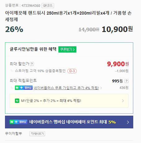현재 가격은 10,900원.