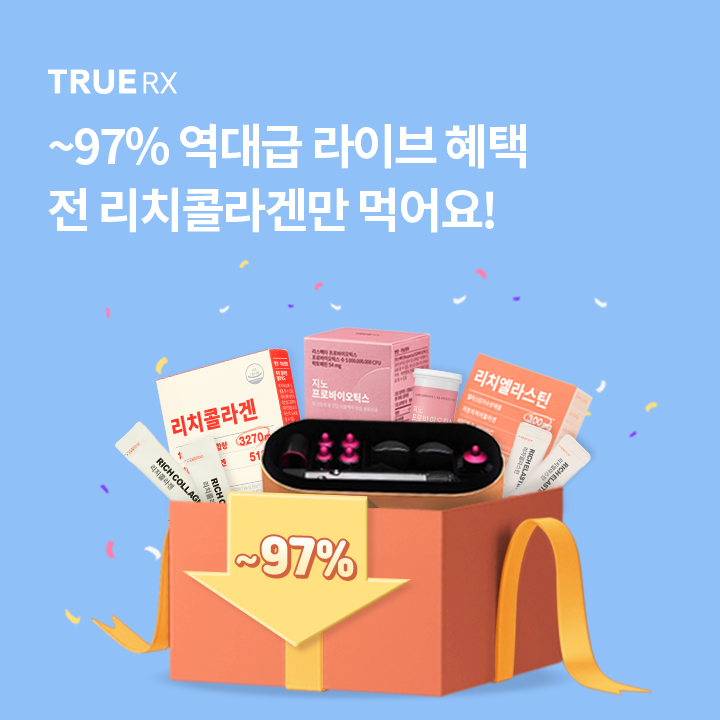 문제 : 트루알엑스 런칭 주년 기념 이번 특가 라이브에서는 약 400만원어치의 푸짐한 경품과 베스트 상품인 리치콜라겐, 유산균 신제품까지 최대 97% 할인가에 만나볼 수 있습니다~!