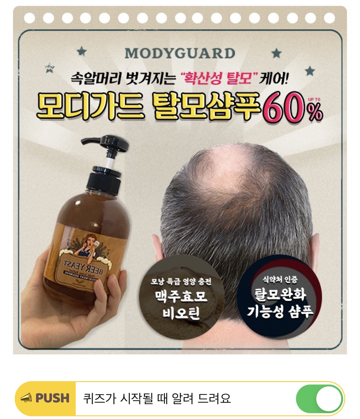 모디가드 탈모샴푸 캐시워크/캐시닥 돈버는퀴즈 정답 12월28일 ㅇㅅㅊ