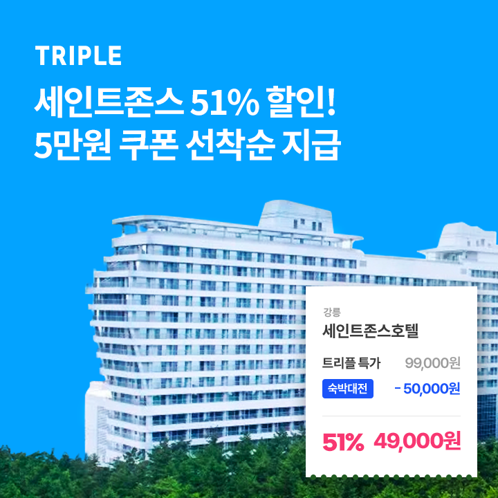 트리플에서 단독으로 기본 할인 쿠폰에 1만원을 더해 총 만원 숙소쿠폰을 상시 발급하고 있습니다.