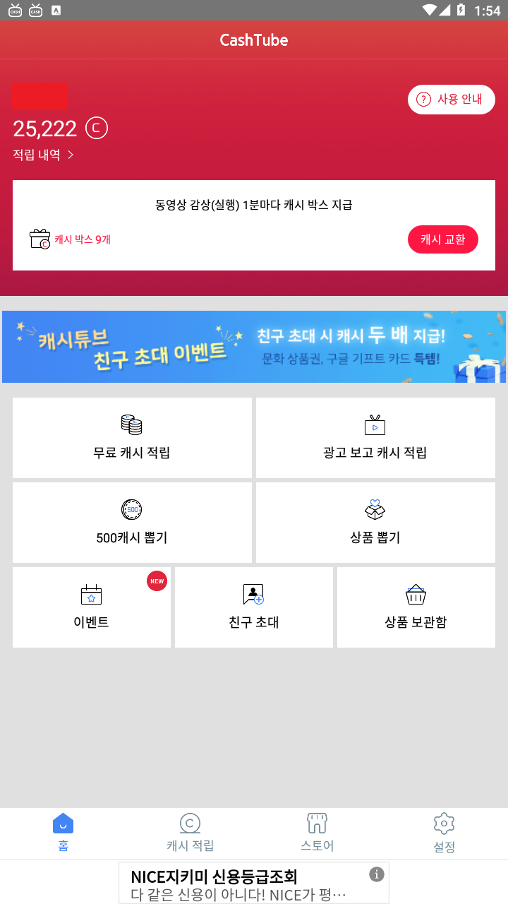 무엇을 설치하거나 혹은 광고를 보면 캐시를 적립해 주는 곳이다.