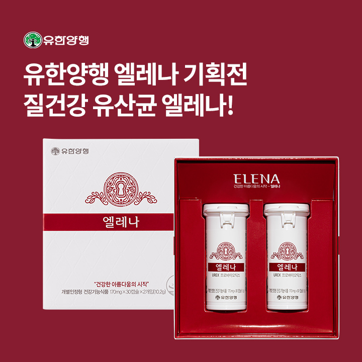 여성 프리미엄 멀티유산균 엘레나 역/대/급 가격+혜택! 문제 : 유한양행 여성의 질과 장을 모두 케어 가능한 멀티유산균 엘레나는 덴마크의 세계적인 유산균기업 의 프로바이오틱스를 원료로 합니다!