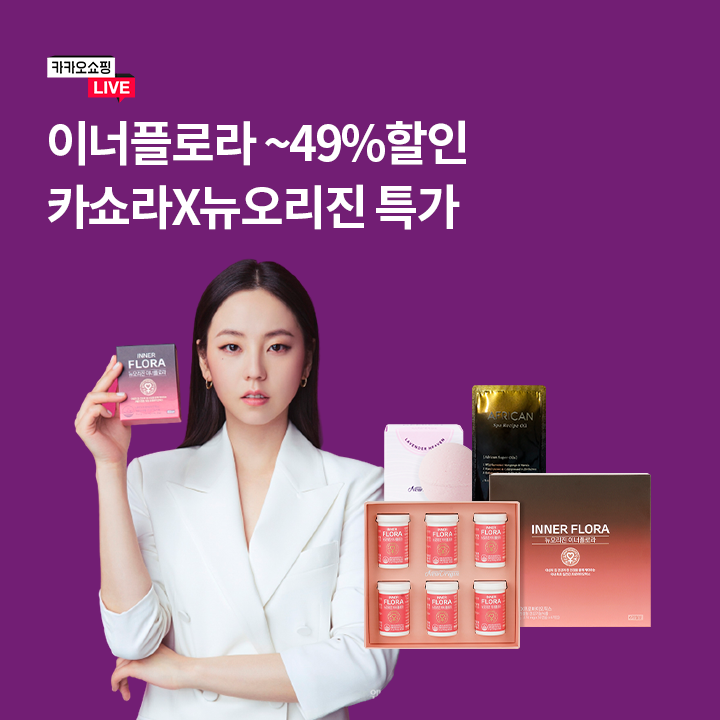 문제 : 오늘 카쇼라 X 뉴오리진 라이브에서는 이너플로라 여성 유산균 6개월분 구매시 을 사은품으로 증정해 드립니다.