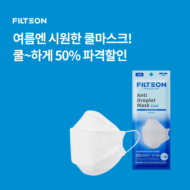 문제 : 필터 전문기업 필슨의 쿨마스크는 입소문으로 많은 사랑을 받고 있는 마스크 중 하나입니다. 시원한 통기성으로 숨쉬기가 아주 편하고, 마스크 레이어를 한겹 줄여 마스크라고도 불립니다.