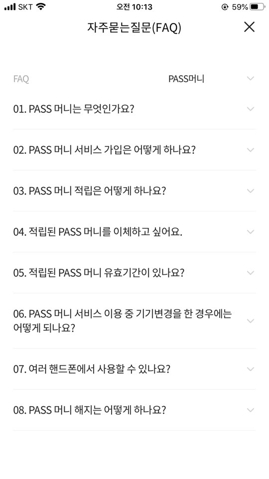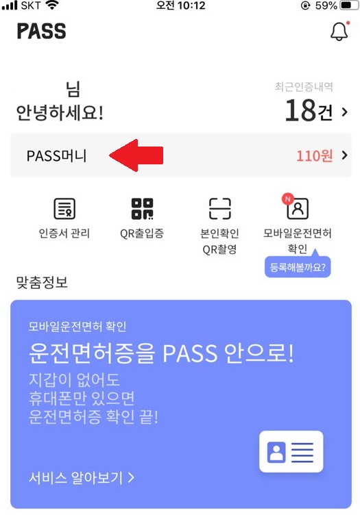 pass 머니 서비스는 무료이지만 19세 이상만 가능하다고 한다.