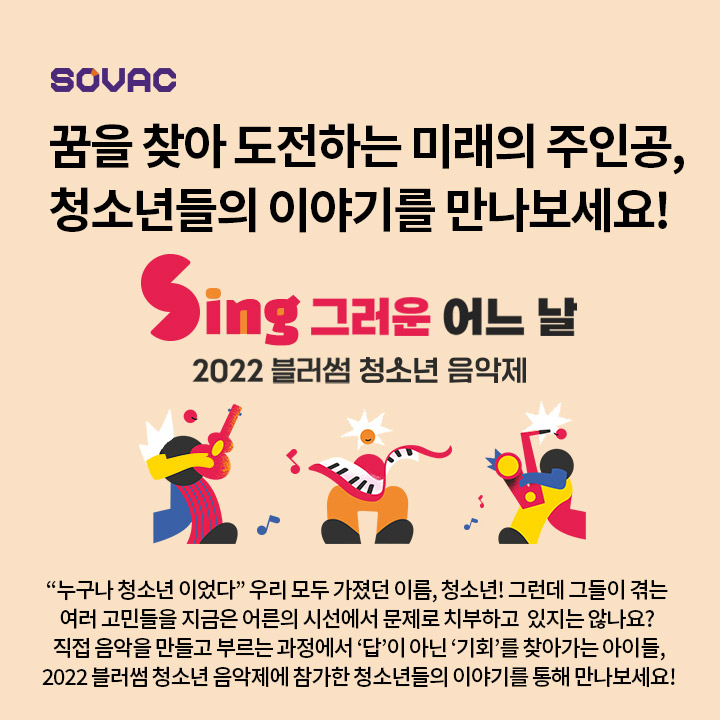 문제 : 청소년의 행복을 응원하는 ‘2022 블러썸 청소년 행복 음악제’ 결선 무대는 ‘Little Sound’팀의 곡 ‘’로 경연을 시작 했습니다.