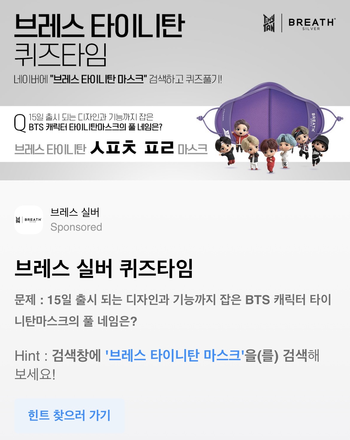 Hint : 검색창에 '브레스 타이니탄 마스크'을(를) 검색해 보세요!
