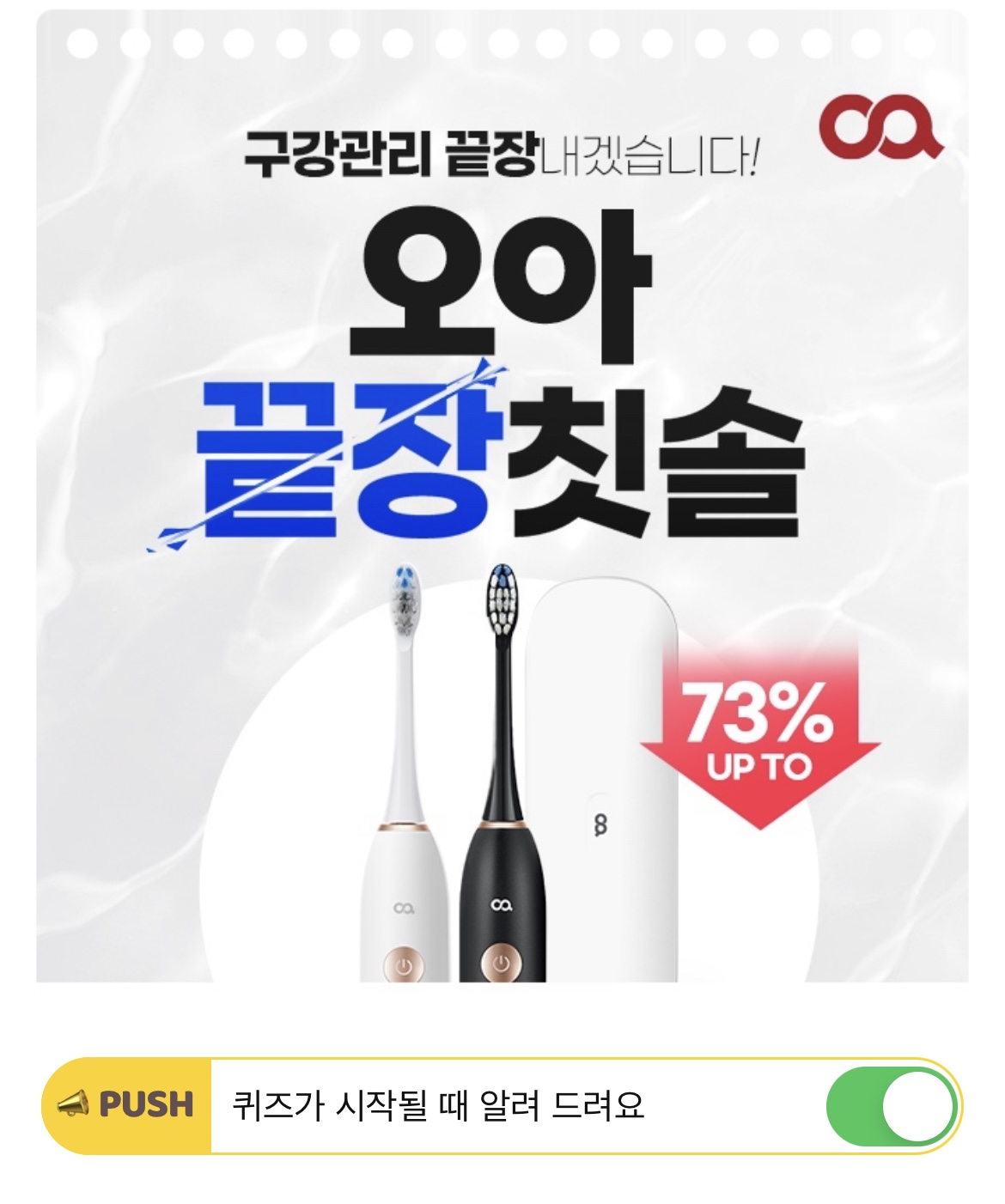 오아 끝장칫솔 타임특가는 오늘 오전 OO시이다? OO에 들어갈 숫자는 몇일까요? (숫자만 입력해주세요)