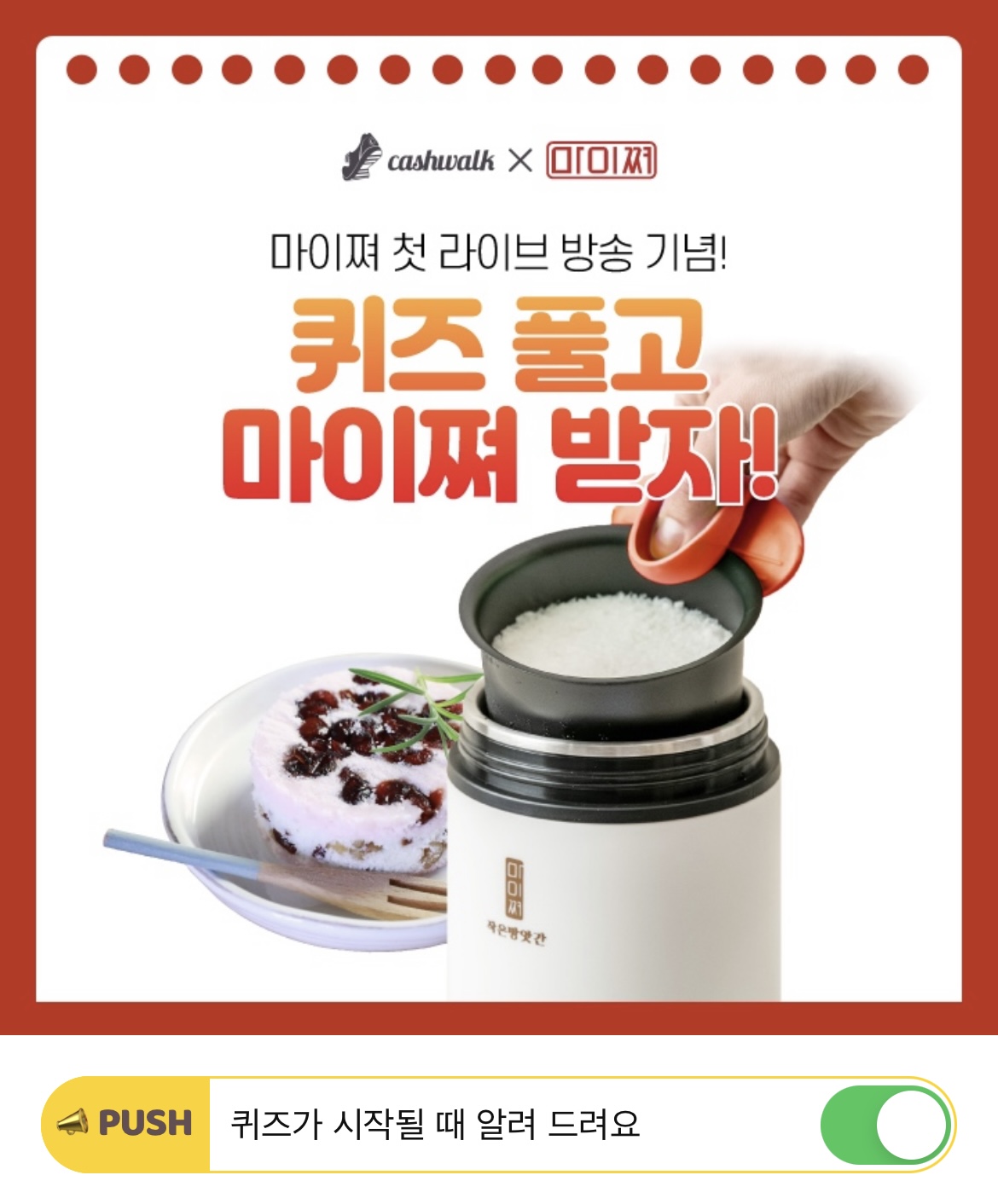 퀴즈풀고 캐시도 같이 적립해봐요.