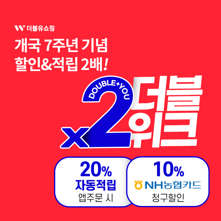 문제 : 더블유쇼핑은 개국 7주년을 맞아 APP 적립 20% + 청구할인 10%의 더블위크를 진행합니다.