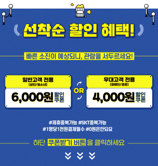 - 할인권 적용 시 좌석당 최소 1천 원 이상 고객 결제 필수.