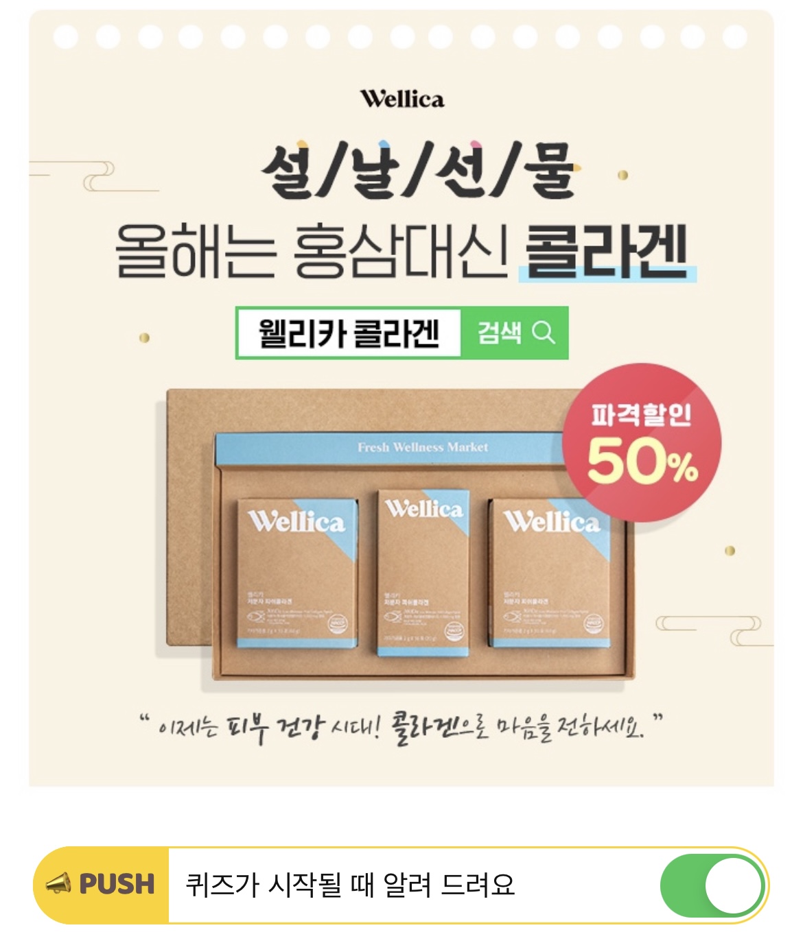 웰리카 공식몰에서 이번 설날을 맞이하여, 웰리카 선물세트 OO% 특가 이벤트를 진행합니다. 여기서, OO에 들어갈 숫자는 무엇일까요?