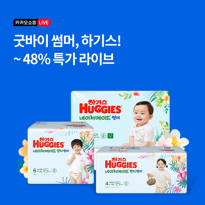 문제 : 오늘 카쇼라 X 하기스 라이브에서는 네이처메이드 썸머, 맥스 기저귀 등을 최대 48% 할인가에 판매하고, 방송 중 플친전용 5,000원 추가 쿠폰을 제공합니다.