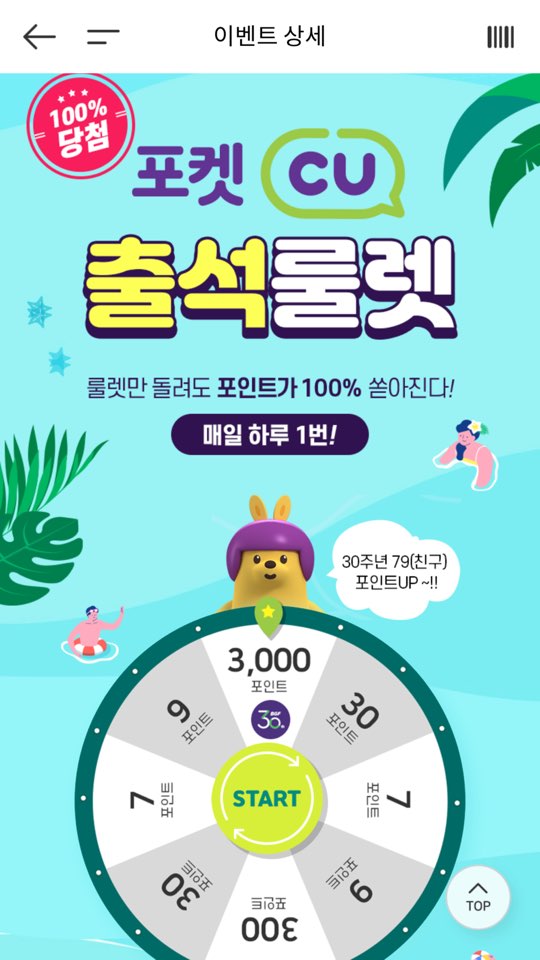- 출석체크로 하루 최소 7포인트를 모을 수 있다.