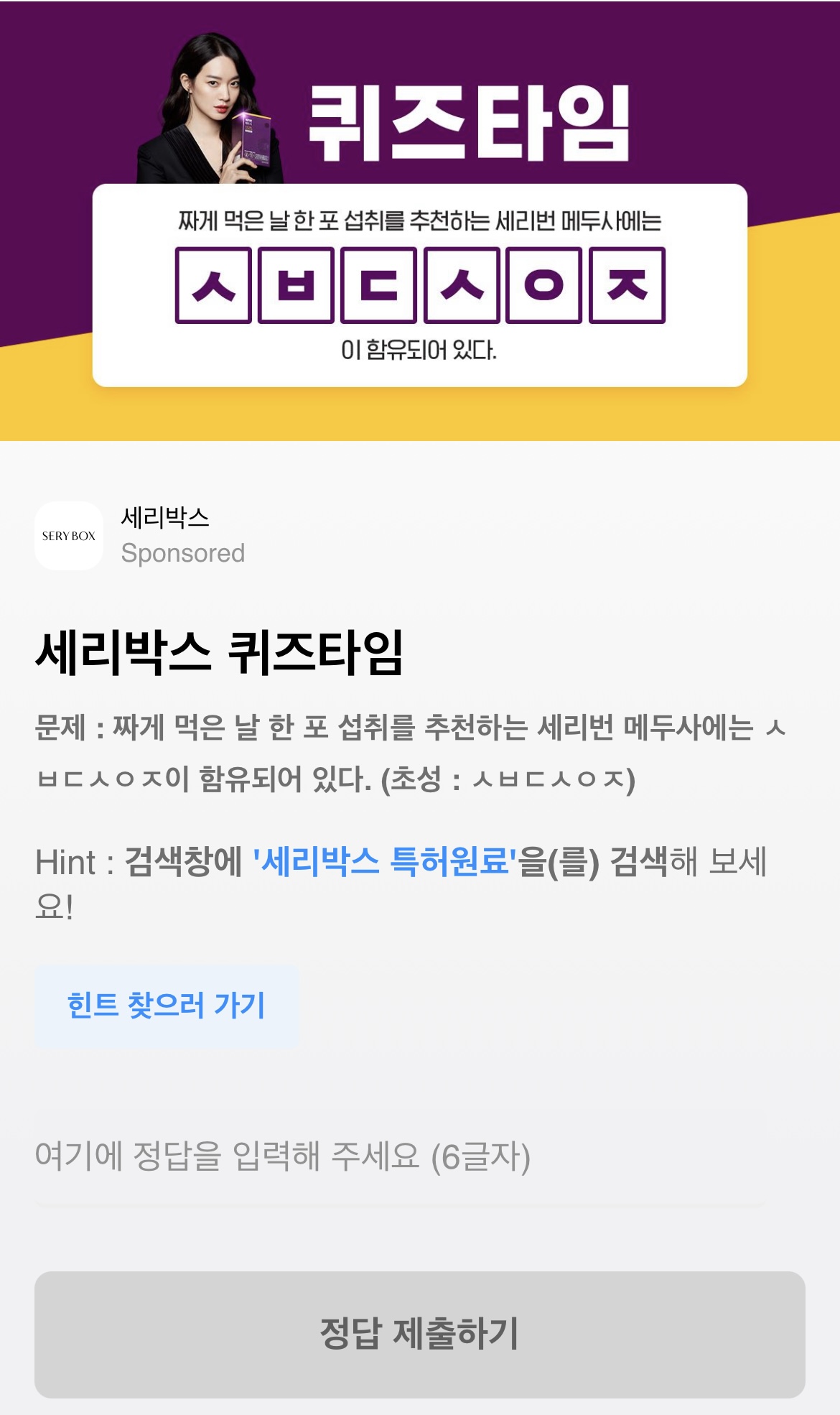 Hint : 검색창에 '세리박스 특허원료'을(를) 검색해 보세요