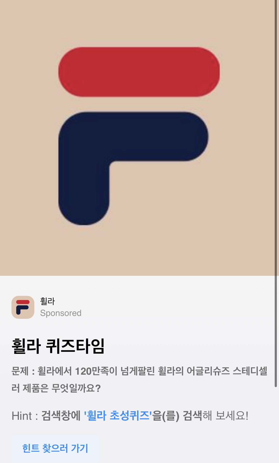 Hint : 검색창에 '휠라 초성퀴즈'을(를) 검색해 보세요!