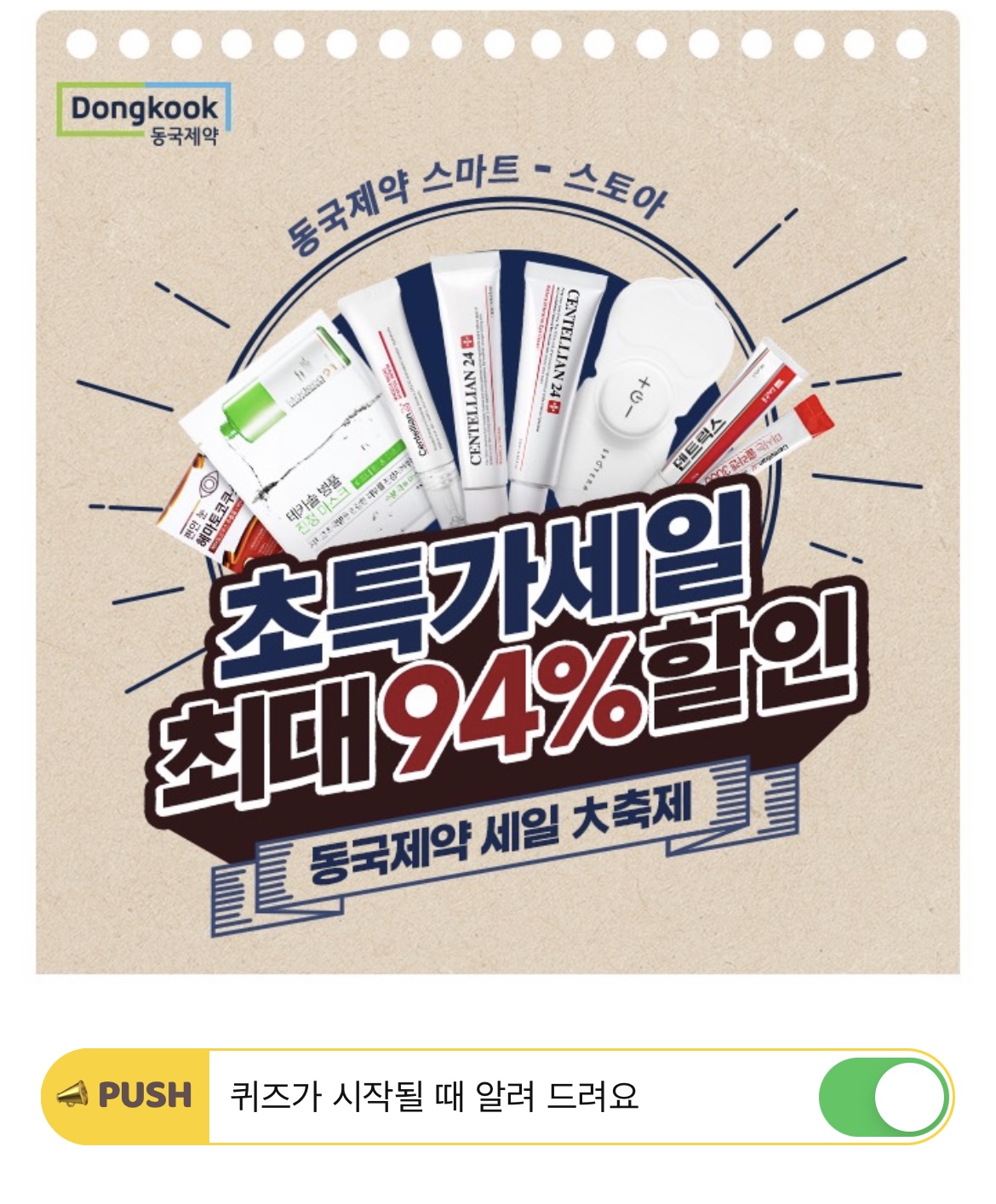 다가오는 설 명절을 기념해 이번 동국제약 스마트스토어에서는 총 160여가지가 넘는 제품들을 최대 할인율 94%에 만나 볼 수 있는 OOO OOOO을 진행 중입니다. 행사기간은 1월 26일부터 2월 4일 까지입니다. 빈칸에 들어갈 단어는 무엇일까요? (힌트 : ㅅㅁㅇㅊㅌㄱㅈ)