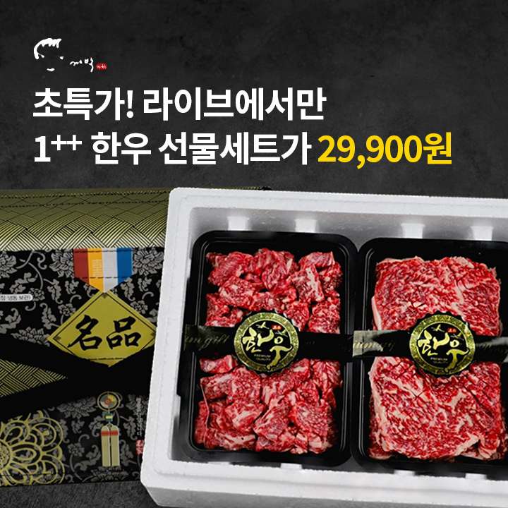 최상급 1++ 한우 선물세트가 라이브중에만 한돈에 29,900원!
