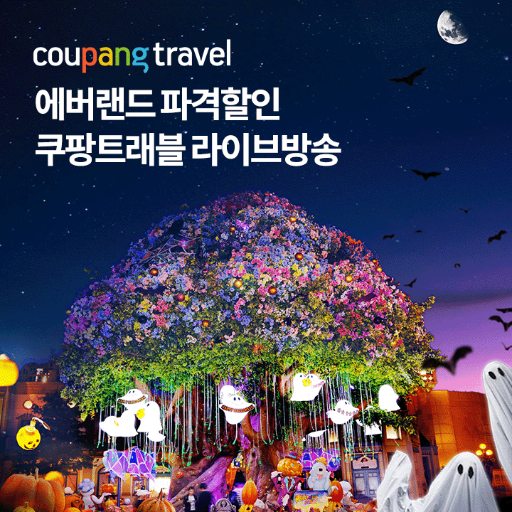 쿠팡트래블 라이브 방송을 지금 시청하세요. 문제 : 에버랜드 할로윈 파티를 역대급 특가로 만나보세요!