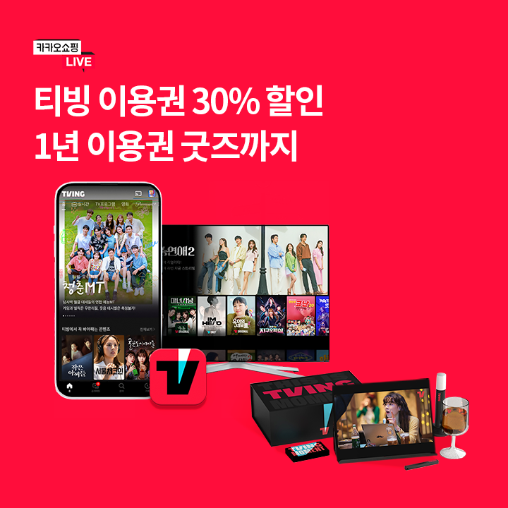 모두 30% 할인 LIVE 문제 : 오늘 카쇼라 X 티빙 라이브에서는 티빙 , 스탠다드, 베이직 3개월/6개월 이용권을 30% 할인가에 판매합니다.