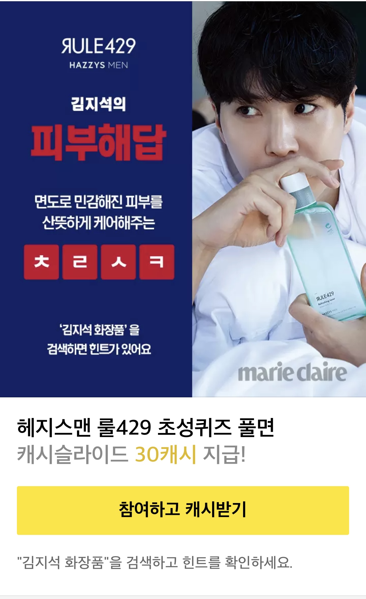 “김지석 화장품”을 검색하면 힌트가 있어요