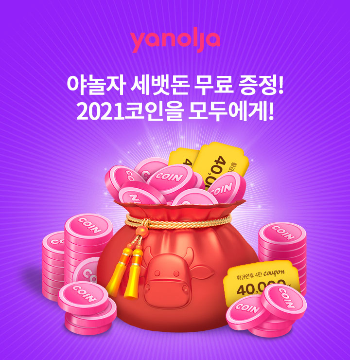 문제 : 야놀자에서는 누.구.나 신청만 하면 100% 받을 수 있는 [야놀자 2021코인 ○○○○○] 이벤트가 진행 중입니다!