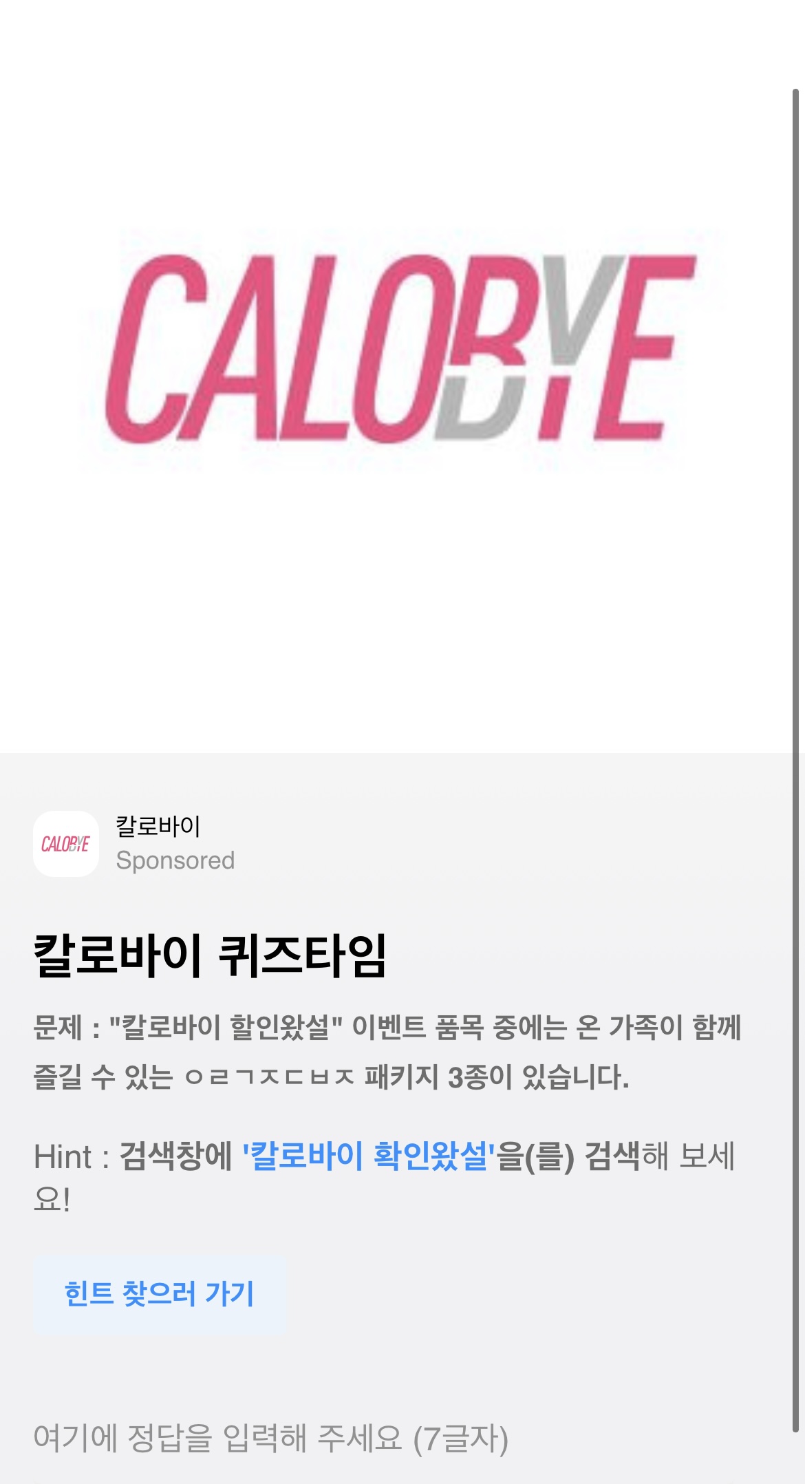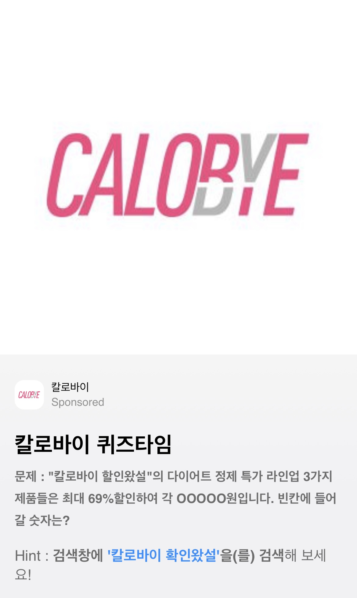 Hint : 검색창에 '칼로바이 확인왔설'을(를) 검색해 보세요!