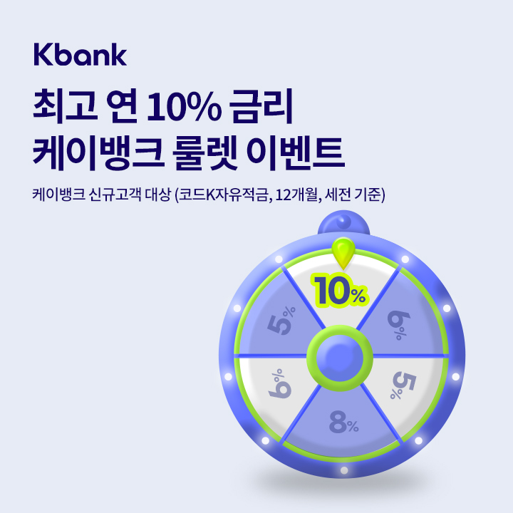 문제 : 케이뱅크 신규고객이면 룰렛만 돌려도 최고 연 10% 코드K 자유의 코드를 받을 수 있어요.